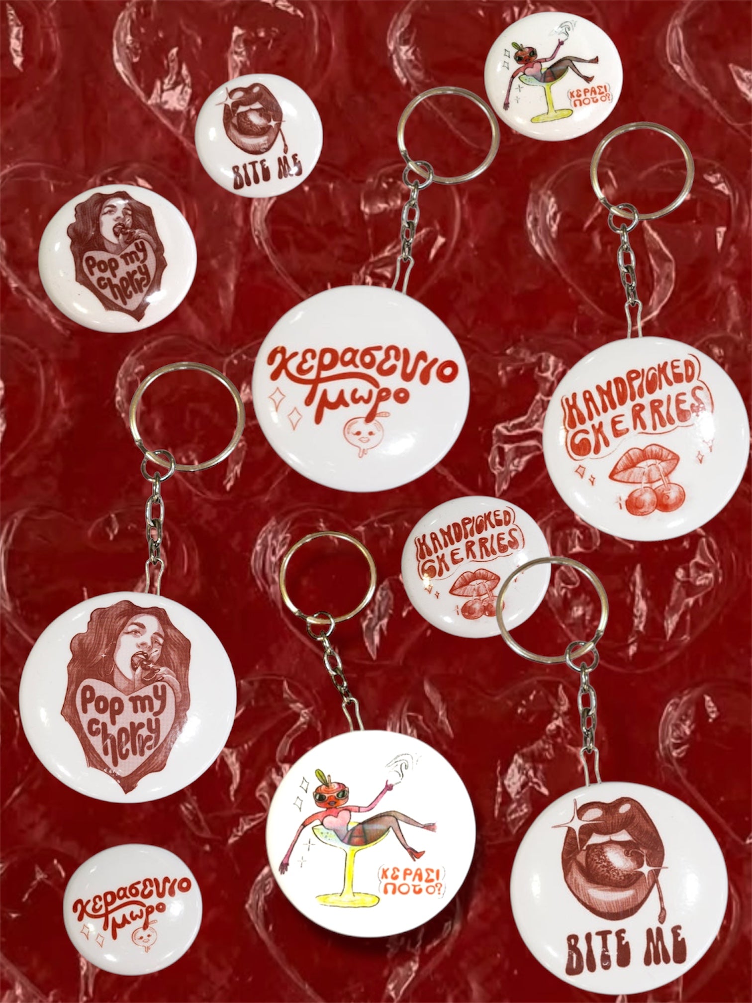 Our favourite handpicked jean cherries combined with art. Every item of this collection is hand painted by artist May Apostolou (@mayapostolou) with her original designs, ready to elevate your denim game. These unique pieces seamlessly blend fashion and artistry, making a bold statement wherever you go!